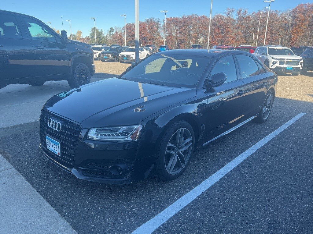 ***AUDI A8 L 4.0T Sport***, ***4.0L V8 Twin-Turbocharged***, ***quattro All Wheel Drive***, ***Driver Assistance Package with Adaptive Cruise Control, Lane Departure Warning, Lane Keeping Assist and More***, ***Black Optic Package with Factory Upgraded Wheels***, ***Audi MMI Navigation Plus System***, ***Dual-Moonroof***, ***Heads-Up Display***, ***Heated/Cooled/Massaging Seats***, ***Mythos Black Metallic with Black***, ***Only 69,xxx Miles***. 18/29 City/Highway MPG