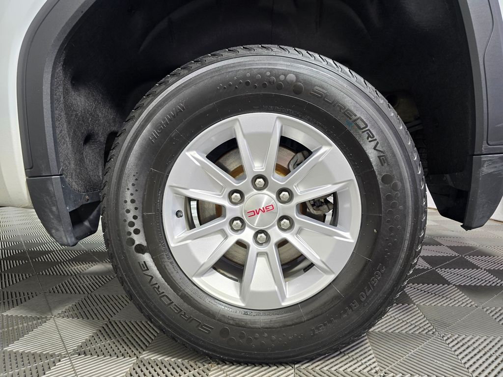 This Summit White Sierra delivers serious capability with its turbocharged 2.7L engine producing 310HP and AutoTrac 4WD system. The spacious crew cab features heated front seats and steering wheel, plus wireless Apple CarPlay/Android Auto for seamless connectivity.